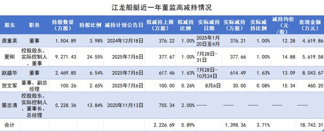 在业绩亏损的2025年,江龙船艇实控人及董监高的减持动作却未停歇。