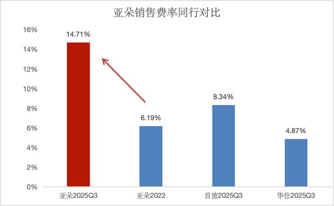 2025年前三季度,亚朵实现零售收入25.05亿元,同比大幅增长74.81%,营收贡献比进一步提升至35.78%。同时,其销售和市场营销费用开支也大幅增加。