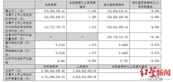 2025年1-9月,峨眉山景区全域累计接待游客517.61万人次,同比增长5.44%,其中接待进闸游客341.1万人次。报告期内,公司累计实现营业收入7.33亿元,同比下降9.06%,降幅较上半年收窄1个百分点;累计实现归属于母公司股东的净利润2.34亿元,同比下降3.98%,降幅较上半年收窄4.5个百分点。