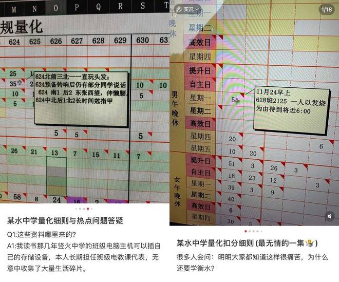小红书上有一位特殊的博主,简介是“某水中学素材库主理人”,她更新了当年在某水中学上学时的量化扣分细则。
