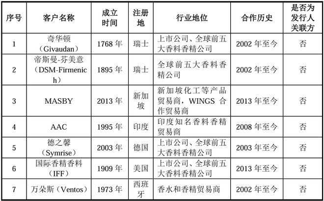 从客户构成来看,格林生物客户集中度也比较高。2022年—2025年上半年,格林生物向前五大客户的销售收入占比分别为43.98%、40.51%、42.97%和42.30%,占据半壁江山。大客户为奇华顿、帝斯曼芬美意、MASBY 、AAC、德之馨、国际香精香料、万朵斯七家大型香料香精企业,若这些企业的产品采购出现不利变化,将对格林生物产生较大冲击。