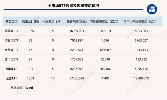在主要股指震荡调整背景下,本周ETF市场上演“反差戏”:股票型ETF缩水超348亿元,但跨境ETF单周狂增203亿元,商品型ETF增加129亿元,共同填补了缺口。更亮眼的是,跨境ETF年内增长额逼近5000亿元,成为资金配置的 “香饽饽”。