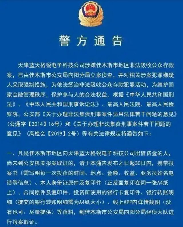 与这个信息同步爆出的是同年的下半年,蓝天格锐资金链断裂,公司倒闭,大量投资人血本无归。