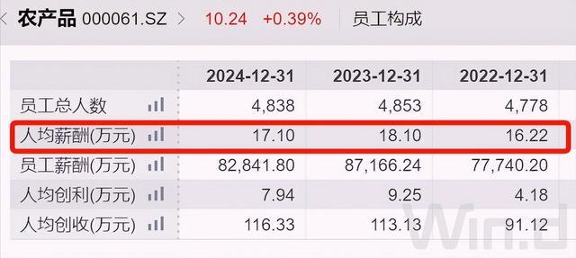 去年,该公司人均创利7.9万元,减少1.3万元,人均税前薪酬17.1万元,减少1万元。
