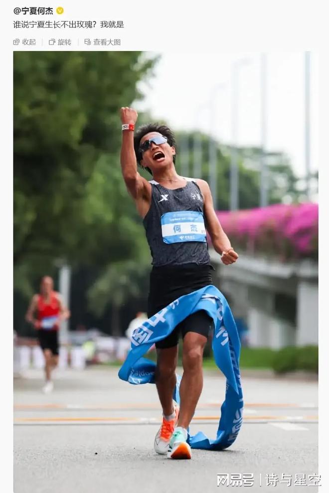 赛后何杰第一时间在社交媒体发表夺冠感言:谁说宁夏生长不出玫瑰?我就是。
