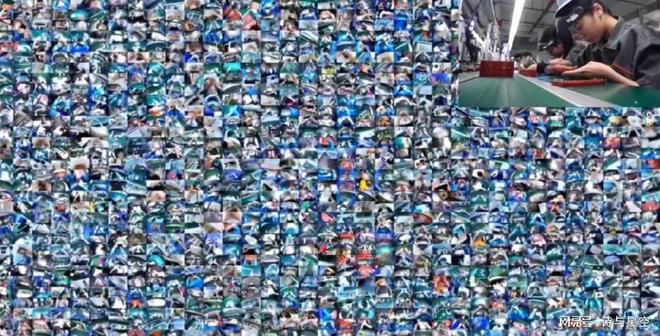 一家公司将AI摄像头绑在2000多名工人身上,记录他们在产线上的一举一动,形成10000多小时的视频,用于训练AI系统。画面上的每一个小方块都是工人工作的视频。