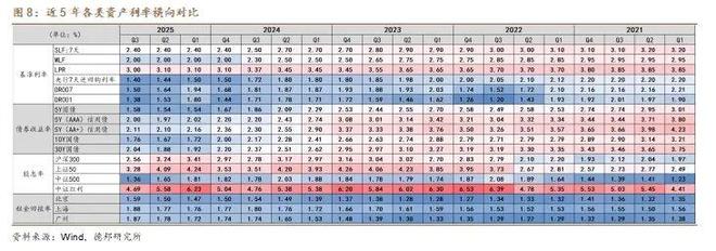 三是央行重点提出五组关系意在进一步畅通货币政策传导机制。央行强调各类利率需在市场化基础上保持结构、期限和风险维度上的合理匹配。五组关系具体包括:央行政策利率与市场利率、商业银行资产端利率和负债端利率、不同类型资产收益率、不同期限利率以及不同风险利率之间的关系。通过以政策利率为锚、理顺“政策利率→LPR→存贷款利率”“政策利率→货币市场利率→中长期债券利率”等传导链条,央行意在加快由数量型向价格型调控框架转型,提升货币政策传导效率,减少资金在金融体系内部空转套利,引导更多金融资源流向实体经济与重点领域。