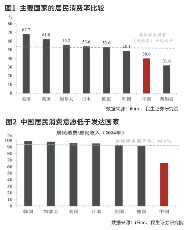 可以把居民消费率进行简单的拆分,居民消费率=居民消费/名义GDP=(居民消费/居民收入)×(居民收入/名义GDP)。民生证券指出,居民消费/居民收入反映的是消费意愿,居民收入/名义GDP反映的是消费能力。因此,要提高居民消费率,政策路径无非是提升居民消费意愿或增强居民消费能力。
