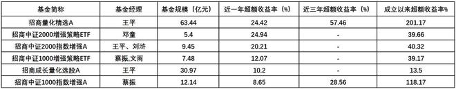 这套“慢”体系在业绩端也得到了验证。招商基金旗下量化产品中,多只近一年超额收益率超过10%(截至9月30日,取收益率更高份额,下同),其中招商量化精选A近一年超额收益达到24.42%,近三年和成立以来的超额收益率分别达到57.46%和201.17%。另外招商中证2000增强策略ETF和招商中证2000指数增强A的近一年超额收益率也超过20%。