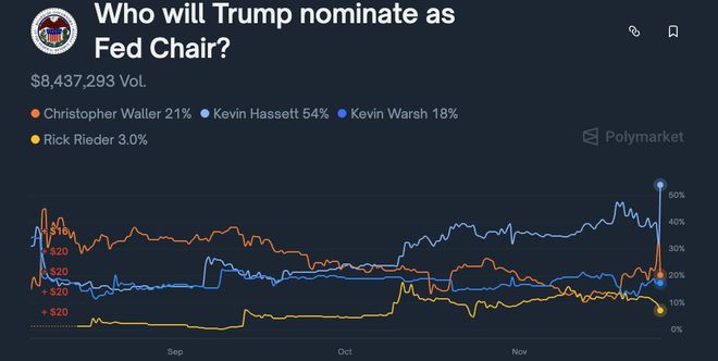 顺便一提,根据此前爆料,目前名单上的5人分别是白宫经济委主任凯文·哈赛特、前美联储理事凯文·沃什、贝莱德高管里克·里德尔,以及现任美联储副主席鲍曼和理事沃勒。预测市场Polymarket数据显示,哈赛特是目前的大热人选。