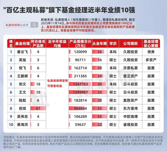 主观私募的价值创造,高度依赖于基金经理的个人研判。当市场单边上涨时,贝塔(Beta)收益往往掩盖了基金经理投资能力的差异;而在近期的持续震荡与结构性行情中,阿尔法(Alpha)收益的稀缺性与珍贵性则凸显无疑。对强调主动管理的主观私募而言,这一时期的表现,或更能真实反映基金经理创造超额收益的能力,而作为业界“顶流”之一的百亿主观私募,旗下基金经理业绩和动向更是市场关注焦点。