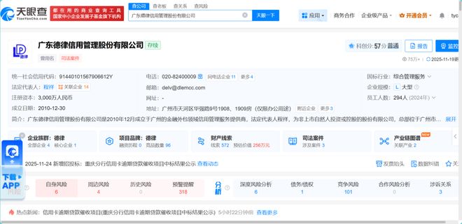 天眼查信息显示,广东德律成立于2010年12月30日,经营范围包括接受金融机构委托对信贷逾期户进行提醒通知。其在BOSS直聘的业务介绍中明确提到,合作甲方涵盖蚂蚁集团等持牌消费金融机构,而贺先生的逾期欠款正是支付宝平台网商银行的贷款业务。
