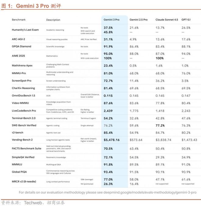 Gemini 3 Pro在应用场景上扩展至文字、图片、音频、视频以及代码等多种数据类型。长上下文处理能力也大幅提升,能够拥有高达百万Token的上下文窗口,可以一次性读入复杂学术论文、长视频等。该模型在多模态能力、物理模拟、氛围编程等领域全面超越GPT-5.1,创下多项基准测试新高。