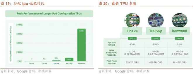 2015年,谷歌发布第一代TPU。近期,谷歌已正式发布并即将上市其第七代TPU芯片Ironwood。据官方数据,该芯片在训练和推理工作负载下的性能相比前代提升约4倍。
