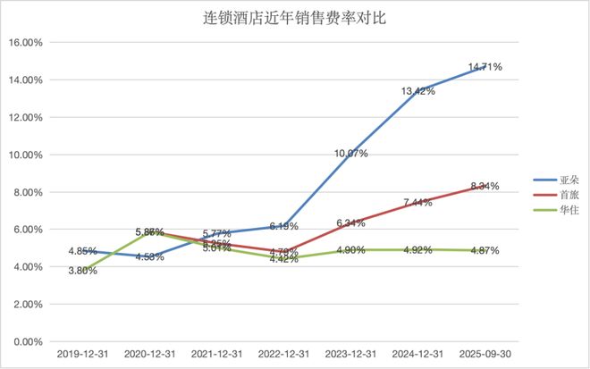 2025年前三季度,亚朵实现零售收入25.05亿元,同比大幅增长74.81%,营收贡献比进一步提升至35.78%。同时,其销售和市场营销费用开支也大幅增加。