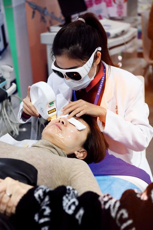 下图:2021年4月,消费者在大健康博览会上体验光子嫩肤。图/IC