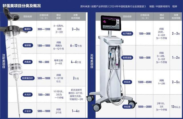 张雯尝试的项目属于轻医美。轻医美是一个商业化概念,通常指通过无创或微创手段改善容貌、延缓衰老。由于满足了人们“想变美又怕手术”的需求,这一赛道近年迅速崛起。嘉世咨询今年7月发布的《2025中国轻医美行业现状报告》预测,2025年中国轻医美市场规模有望突破2500亿元,并将以15%—20%的年增速持续扩张,成为全球最具增长潜力的市场之一。目前,轻医美项目已占医美市场的六成以上,且占比仍在提升。
