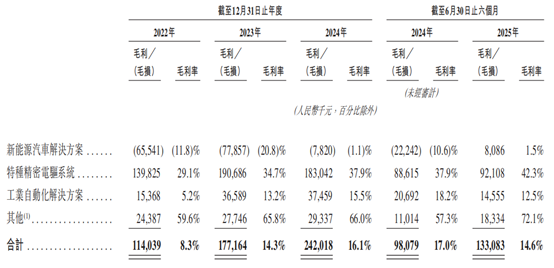不过,值得注意的是,公司新能源汽车业务的“以价换量”态势明显,在销量从2022年的9.67万套增至2025年上半年的13.18万套的同时,平均售价从5763元降至4166元,最新毛利率也仅有1.5%,堪堪达到盈利状态,成为四大业务中毛利率最低的板块。