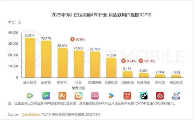 根据QuestMobile数据,截至今年9月,字节旗下的红果短剧月活已经来到2.36亿,超越了B站和优酷视频。排在它前面的分别是3.5亿的腾讯视频、3.2亿的爱奇艺以及2.5亿的芒果tv。换句话说,看短剧的人越来越多。