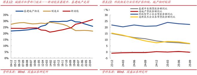 >信用扩张:随着经济发展模式的转换,信用扩张机制也在发生变化,一是原来城市综合开发更多依赖以间接融资体系为支撑的银行体系,当前房地产、基建相关占比显著下降,各项贷款余额增速也显著低于科技型中小企业和高新技术企业,“十五五”规划建议稿“要求大力发展科技金融、绿色金融、普惠金融、养老金融、数字金融”,伴随着央行结构性货币政策的加码扩围,“五篇大文章”背后的新动能在信用扩张中的占比将进一步提升。二是相比于间接融资体系,新兴产业及未来产业等新支柱型产业与未来产业更为依赖直接融资体系,预计“十五五”期间通过资本市场改革创新来“提升直接融资比例”,将有助于新经济动能的快速发展。
