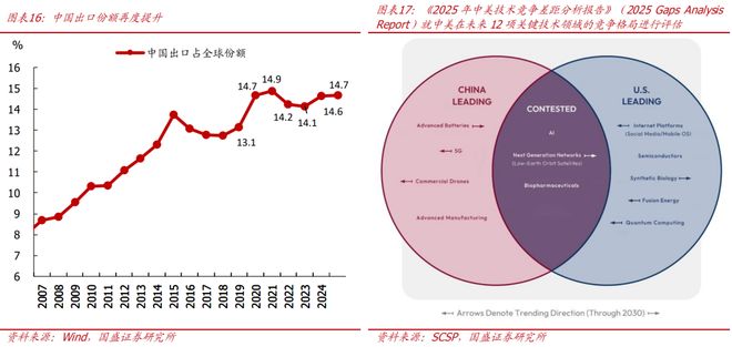 1、争夺新一轮产业浪潮制高点和领导权是关键。2025年1月,美国智库特别竞争研究计划(SCSP)发布报告《2025年中美技术竞争差距分析报告》(2025 Gaps Analysis Report),就中美在未来12项关键技术领域的竞争格局进行了系统性评估与比较研究,所谓“得产业者得未来”,特朗普政府深谙此道,推动“去风险化”、“重返制造业”、“毒丸条款”等措施来帮助美国锻长板、补短板。同样,我国“十五五”规划建议稿件明确要求“培育壮大新兴产业和未来产业”,要“加快新能源、新材料、航空航天、低空经济等战略性新兴产业集群发展,前瞻布局未来产业,探索多元技术路线、典型应用场景、可行商业模式、市场监管规则,推动量子科技、生物制造、氢能和核聚变能、脑机接口、具身智能、6G等成为新的经济增长点”。