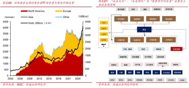 >“去美元化”、“去美债化”、“债务货币化处置”是黄金上涨的长期逻辑。作为世界储备货币的美元,各国央行的储备多元化需求仍在推动“去美元化”趋势演绎,黄金被视为替代美元的货币中介之一,依旧受益于“去美元化”的趋势,比特币等也是选择之一。在“去美元化”的趋势下,“去美债化”叙事也逐步开启,全球短期回购市场往往以高等级国债作为抵押品进行资金融通,基于对美国债务风险的担忧,以实物黄金数字凭证等方式作为抵押品的替代方案开始被提出讨论,2025年9月3日,世界黄金协会(WGC)宣布将在2026年初于伦敦启动“集合黄金权益(PGI)”数字黄金试点,主要用于机构抵押融资、散户小额投资以及跨境黄金结算等方向。另外,面对较大规模的主权债务压力,以美欧为代表的发达经济体,依旧选择通过“货币化处置”的方式进行应对,也有利于黄金价格。短期看,黄金价格可能会受到中美关系缓和、降息预期修正、风险资产大涨等因素带来的阶段性扰动,“去美元化”、“去美债化”及“债务货币化处置”是黄金上涨的长期逻辑,目前2030年底COMEX黄金超远期合约价格已经突破4800美元/盎司,也有所说明。