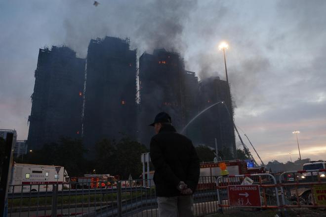 香港大埔宏福苑火灾现场(图源:时代周报记者 傅一波/摄)