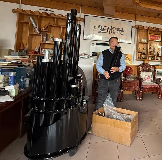 赵宏亮正在组装“世界最大的笙”倍低音笙。