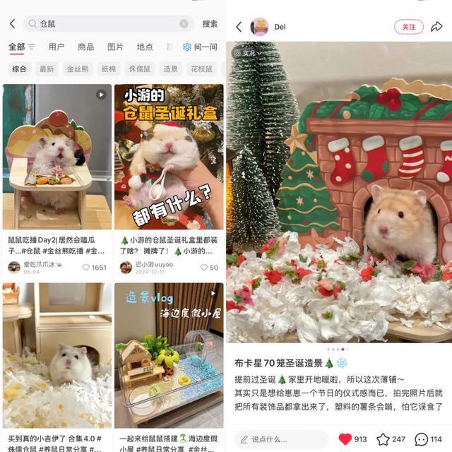 一只小仓鼠能被养的多好?姚元戎总结,在食品层面,健康化是十分明显的趋势;在消耗品层面,仓鼠用的垫料材质越来越好,一些天然材质使用频率变得更高;最丰富的要属仓鼠用品,#仓鼠造景#是年轻人养鼠过程中最具创造力的环节,用各式各样的手工制品、装饰品来装点仓鼠笼,“给仓鼠造大别墅”,就是把自己梦想中的生活复刻一遍,可玩性非常高。