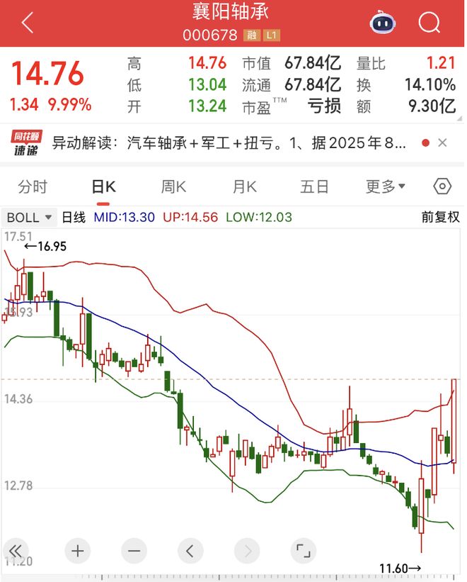股价方面,襄阳轴承近期较为强势,周二也刚刚经历过一个涨停,近六个交易日内区间涨幅超过20%。