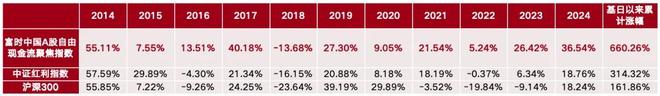 反映收益端,富时现金流指数很能“打”,基日以来的累计涨幅为660.26%,长期跑赢了中证红利、沪深300等宽基指数。