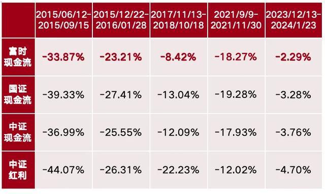 数据来源:Wind,回调阶段是指富时现金流、国证现金流、中证现金流、中证红利指数均下跌的阶段。