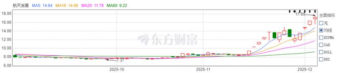 业绩方面,航天发展前三季度营收达到16.97亿元,同比增长42.59%,其中Q3单季营收10.08亿元,同比增幅209.17%,主要源于蓝军体系及通信装备等核心业务订单集中交付。