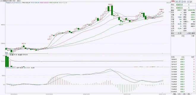 更有资深期货人士对记者表示,对于专业机构而言,交易的主战场通常是主力合约。当前纽约黄金期货的主力合约是2602合约,截至12月1日,其持仓量高达32万手,成交量22万手,与非主力合约有着天壤之别。数据显示,黄金2602合约的历史最高价出现在10月20日,为4433美元,但从未到达过4500美元。