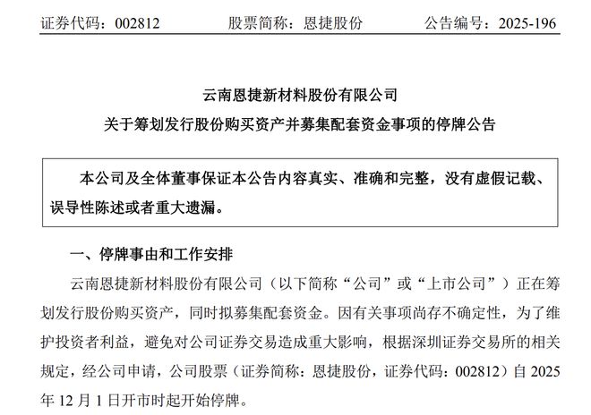 11月30日,恩捷股份发布公告称,计划收购主营锂电池隔膜设备制造的中科华联,交易初步确定拟通过发行股份方式收购中科华联100%股权并募集配套资金。