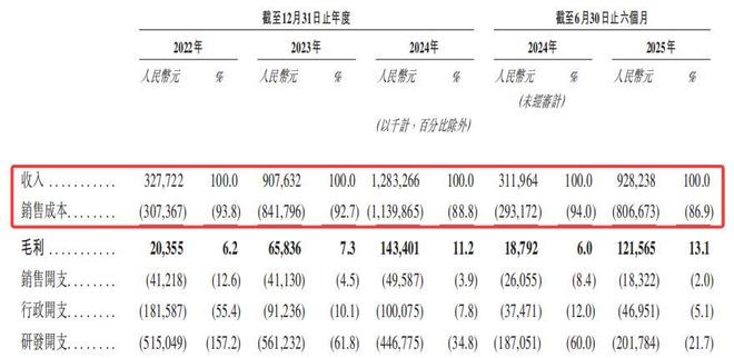成本居高导致福瑞泰克持续亏损的重要原因之一。2022 - 2025年上半年,公司销售成本分别约为3.07亿元、8.42亿元、11.40亿元和8.07亿元,占总收入比例分别高达93.8%、92.7%、88.8%和86.9%。