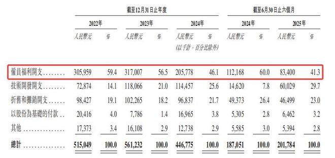 从具体类目来看,福瑞泰克的研发开支主要涵盖员工工资(员工福利开支)、技术开发开支、折旧和摊销开支等。招股书显示,2022年-2025年6月30日,公司研发人员的工资分别约为3.05亿元、3.17亿元、2.05亿元和8340万元。