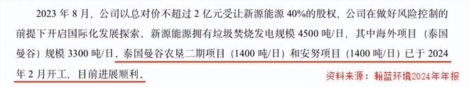2024年2月,公司正式将一只脚踏进了泰国。其曼谷农二期项目和安努项目的垃圾焚烧发电规模均可达到1400吨/日,迈出了国际化的第一步。