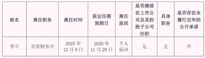 根据公告,曹卓将继续在上市公司及其控股子公司任职,但职务一栏显示是“无”。