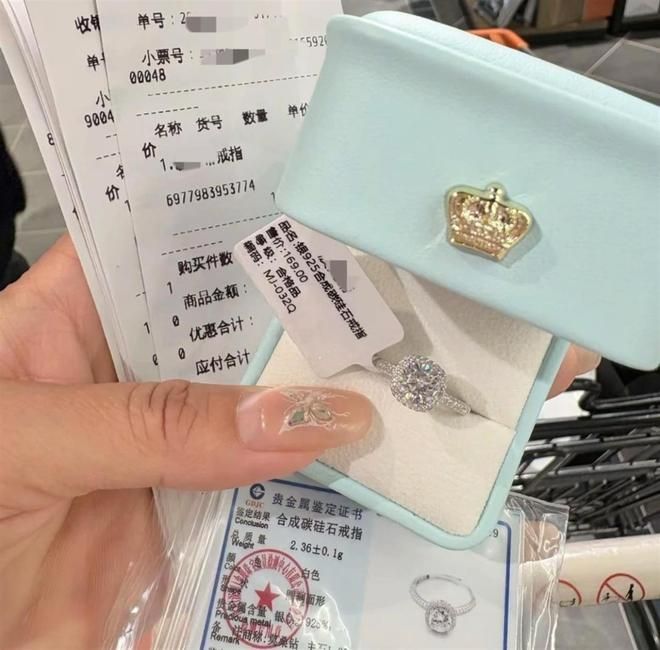最近胖东来的“小方糖戒指”因为被称为“1克拉钻戒平替”在社交平台引发广泛关注。售价仅169元起,凭借亮眼造型与超高性价比迅速“出圈”。小方糖“钻戒”实际是“莫桑钻戒”,鉴定证书显示该戒指材质为“莫桑石”,品名为“925银合成碳硅石戒指”。在多个二手交易平台,仍有卖家出售小方糖戒指,每枚加价20元左右,包邮到家,有鉴定证书及购买小票。