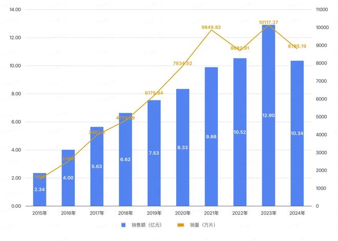 2015—2024年金戈销售额及销量。图/中国新闻周刊整理自白云山财报