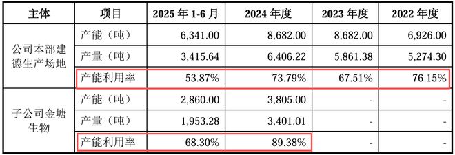 2022年到2025年上半年,公司本部的产能利用率分别为76.15%、67.51%、73.79%和53.87%,整体呈现走低的趋势。子公司金塘生物的产能利用率也已经降至68.30%。在当前产能尚未得到充分消化的情况下,格林生物却仍计划募集资金4.2亿元投入年产6300吨高级香料生产项目,新增全合成系列和松节油系列产品产能。