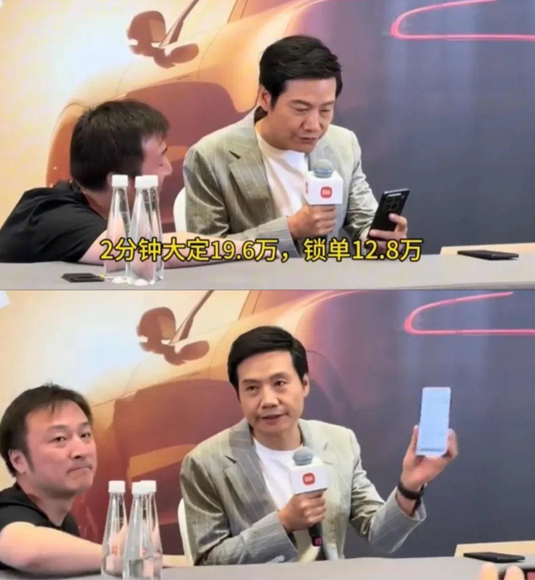 在6月26日的小米汽车发布会上,YU7开启大定两分钟,雷军看向旁边工作人员的手机,他先是不可思议地低语了一句“哇,天呐”,然后反复确认,随后向大家展示“两分钟,大定19.6万,锁单12.2万”,现场随之爆发出热烈的掌声,“可能我们大家一起见证了中国汽车工业的一个奇迹”。