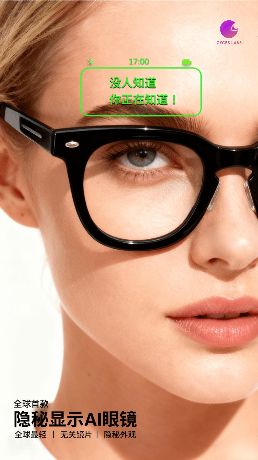 Gyges Labs的先进光学技术与AI创新能力,使得这款智能眼镜不仅具备超轻显示、无关镜片和外观隐形等诸多兼具AI能力与显示能力的创新优点,更兼具了“用户友好(即不显眼、超轻、长续航、轻松解决配镜问题)”这一眼镜用户的日用本质场景,满足了AI眼镜用户的首要需求,成为全球目前为止具有最小、最轻、最隐秘的显示能力的AI眼镜。